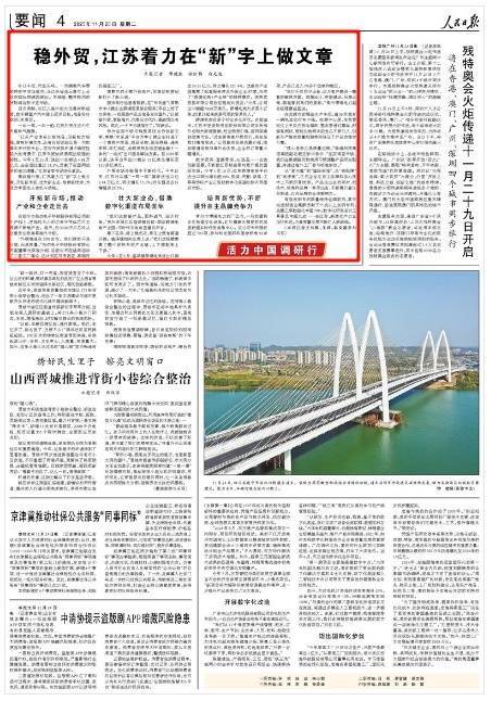 围绕稳外贸,江苏着力在“新”字上做文章,开拓新市场、壮大新业态、培育新优势,为活力中国注入生机与动能。